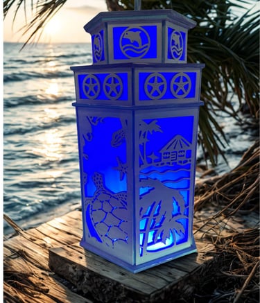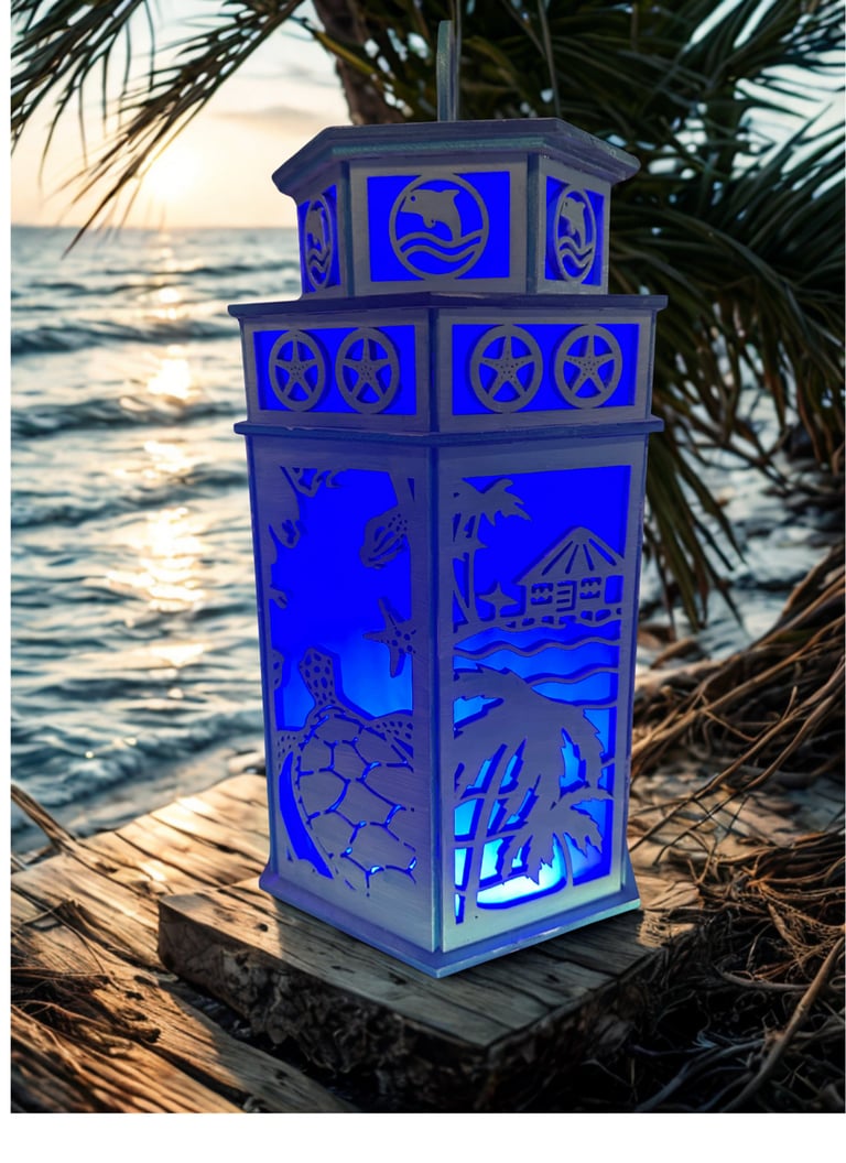 Lanterns are between 12 to 18 inches tall and approx. 10 inches wide with acrylic inserts for lighting, 5 volt LED lights with standard usb plug starting at $65.00 Contact us about shipping quotes.